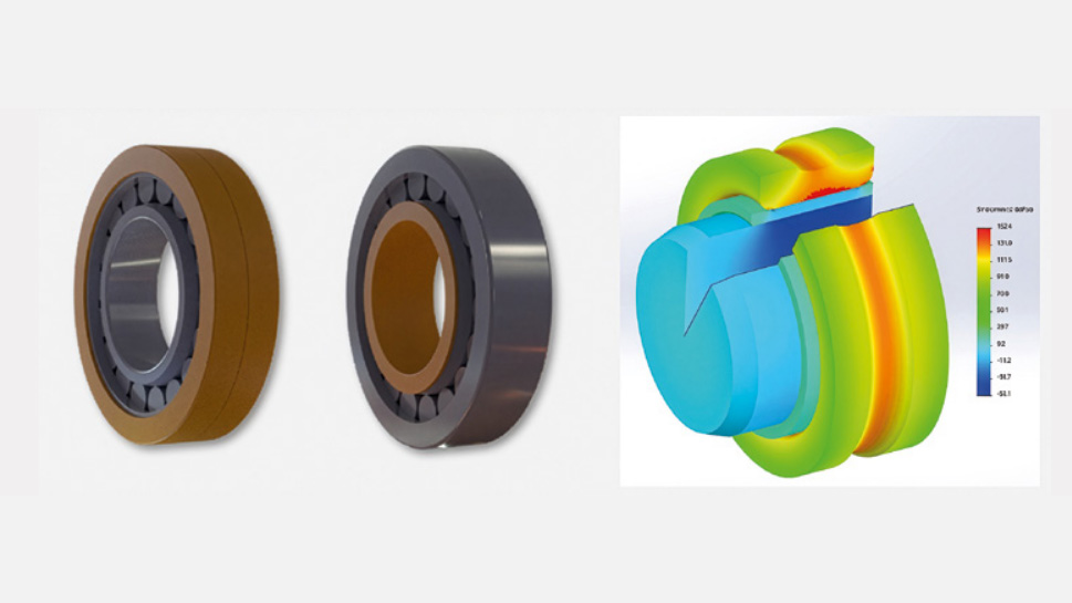 The design of the Vespel® polyimide sleeve requires studying the different press-fitting scenarios and checking that the loads resulting from the press-fitting of the various parts, combined with thermal expansion, are acceptable (Figure 1). Bearing manufacturers typically provide maximum hoop stress and radial stress; this information is used to properly dimension the Vespel® polyimide sleeve. Although proper testing needs to be conducted on the final system to ensure the parts behave appropriately, simulations are used to build confidence and quickly design a working prototype (Figure 1).