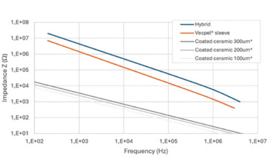 Various tests have been conducted to support the use of Vespel® sleeves in addressing electrical corrosion issues. The electrical impedance has been measured by IMKT (Institut für Maschinenkonstruktion und Tribologie at Leibniz Universität Hannover). Results indicate that the electrical insulation performance of Vespel® SP-1, although
